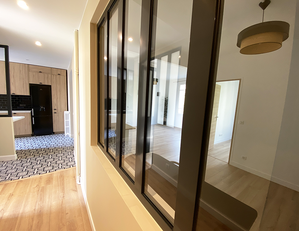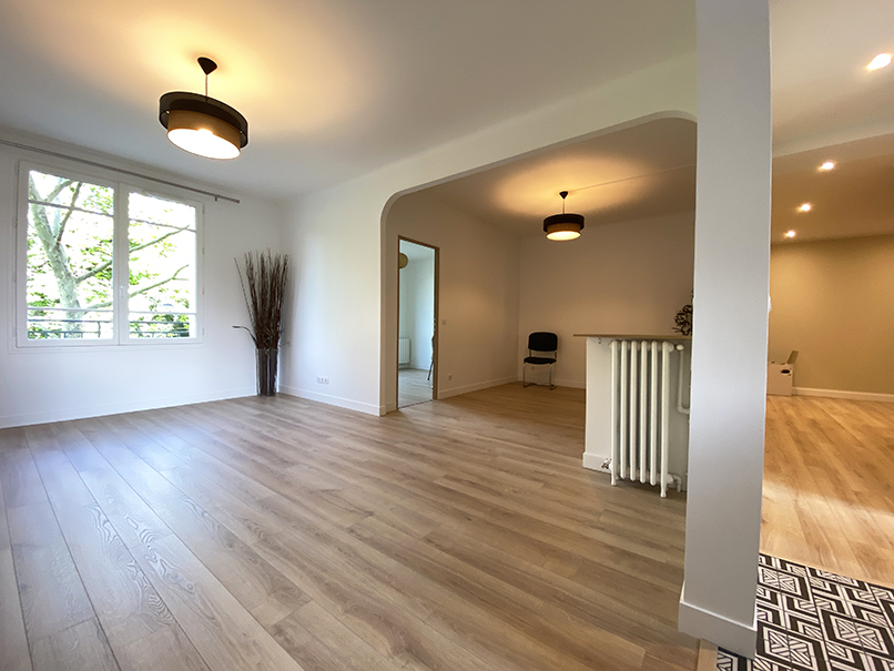 Buttes Chaumont, angle rue Botzaris - Simon Bolivar. Vue plongeante et accès immédiat au Parc. Dans un magnifique immeuble Art-Déco, pierre de taille, bow-window, très bel appartement familial, entièrement rénové haut de gamme. Au 2ème étage avec ascenseur, composé de : une cuisine conviviale semi ouverte sur un salon – salle à manger, trois chambres dont une suite parentale avec sa douche, une salle de douche avec wc, second wc indépendant, entrée-rangements. Produit rare, à visiter sans attendre. 42 lots principaux. Charges communes annuelles 7168 € eau chaude, chauffage, gardien inclus, taxe foncière 2207 €. 103m2 carrez. Agencement 2 chambres possible pour maxi-séjour. Pas de procédure en cours. Honoraires d’agence à la charge vendeur.